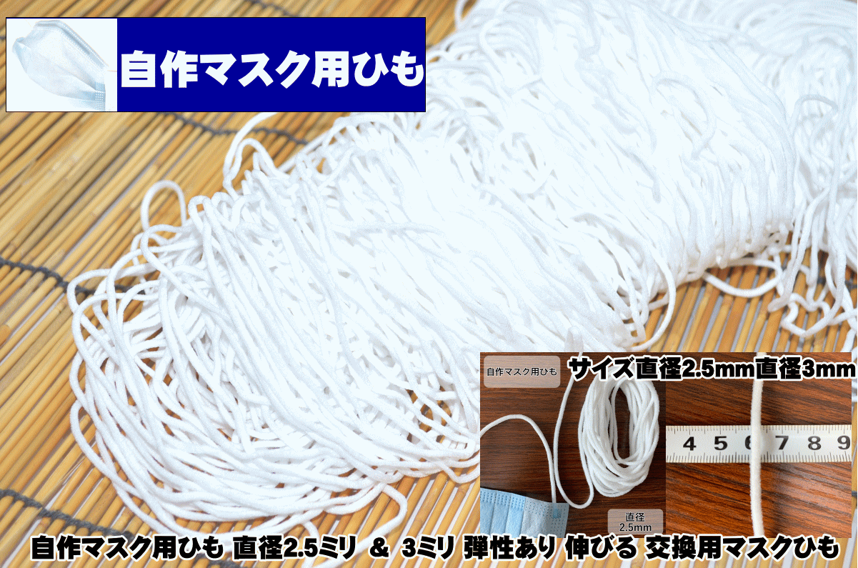 【在庫処分半額】自作マスク用ひも 直径3ミリ 弾性あり 伸びる 交換用マスクひも 手作り マスク用ゴム ゴム紐 ホワイト 3mm 5m×3本 合計15m ハンドメイド 自作マスク 生活用品 手芸用品 丸紐 専用ゴム ハンドメイド用品【在庫あり】