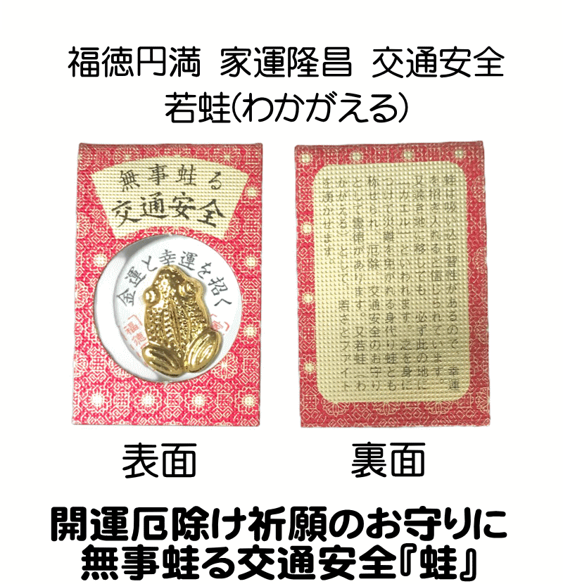開運厄除け祈願のお守りに 無事蛙る交通安全『蛙』日本製品 個装形態:ビニールケース商品サイズ:50x30mm 縁起物 開運 銭亀 長寿 健康 金運上昇 金色 和風雑貨 長寿祝い プレゼント ギフトメイドインジャパン=日本で製造された製品MADE IN JAPAN【キモノ仙臺屋の和雑貨特集】